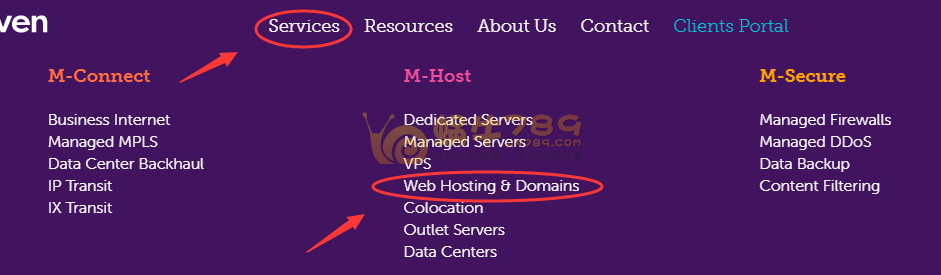 1、进入官网后,首先点击右上角国旗,把语言更换成英语。然后按下图所示进入域名注册页面。