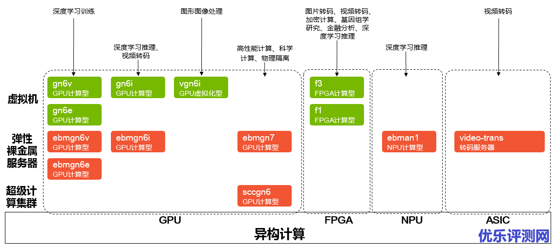 下图列举了阿里云ECS部分异构计算实例规格族及其对应的业务场景。
