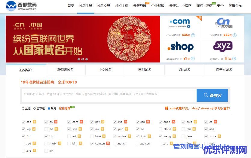 西部数码怎么样?西部数码,号称19年老牌域名注册商,全球TOP10,其支持的可注册的后缀域名也是很多的,国内新网、西部数码、万网都是比较知名的老牌域名注册商,很多大厂也是API代理他们家的域名服务。那么西部数码具体支持哪些后缀域名注册?域名在建站流程中启动怎么样的作用?我们为什么要选择西部数码注册域名呢,老刘博客本文也会和大家探讨下西部数码域名优势的。