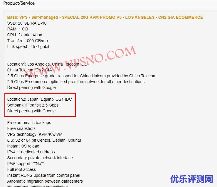 目前这个机房已经直接添加到了 DC6 CN2 GIA-E 这个套餐里面,下单购买DC6 CN2 GIA-E 套餐的时候就可以直接选择软银机房(目前仅限购买DC6 套餐才可选日本机房)。如果你是之前已经购买了 DC6 CN2 GIA-E 套餐美国机房的(包括之前购买过$49.99/年的 DC6 限量版的用户),想要转入日本大阪的软银机房,都可以直接在后台一键迁移。下图DC6 CN2 GIA-E套餐的介绍内显示了日本机房的选择。