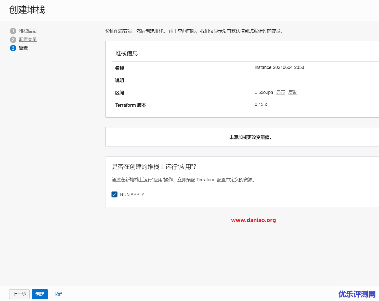 点击创建,默认会自动运行一次,我们点击下载 Terraform 配置,会得到一个压缩包,解压后,会有main.tf,用记事本打开,会有你需要的任何信息。当然这个文件也是我们前文需要初始化的东东,总而言之,这个文件就是这么来的。