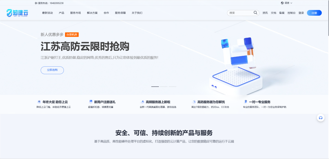 知捷云一家专注于提供高性能、高防御IDC解决方案的云计算服务商。自营双线机房,接入电信、移动双线路,确保高速稳定的网络环境。依托先进的硬件设施与优质的网络资源,我们可提供真实防御300G的安全保障,为企业、开发者及游戏用户打造安全、高效、低延迟的云计算体验。