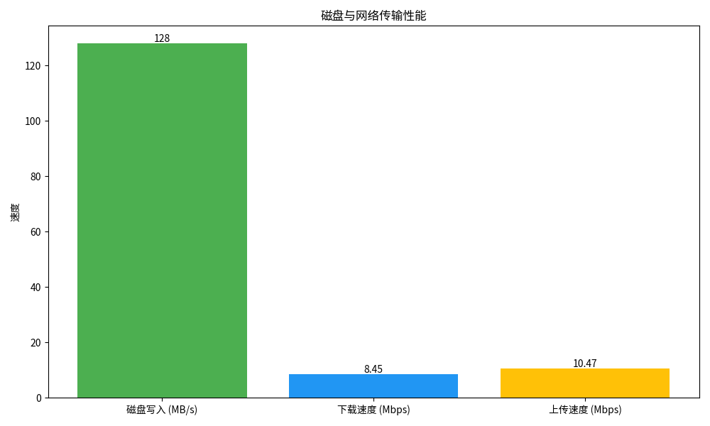 以下图表直观展示了服务器的核心性能指标以及磁盘与网络传输性能。