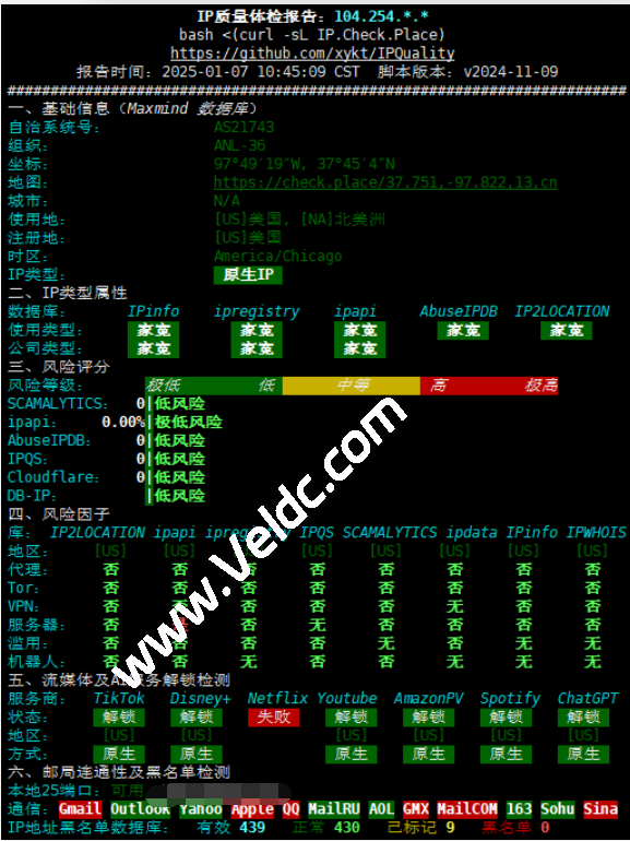 丽萨主机美国西雅图家宽住宅IP VPS流媒体解锁能力测试