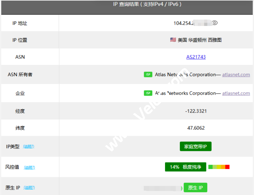 美国家庭宽带静态住宅IP VDS(西雅图) – Atlas Networks真家宽/静态住宅VDS